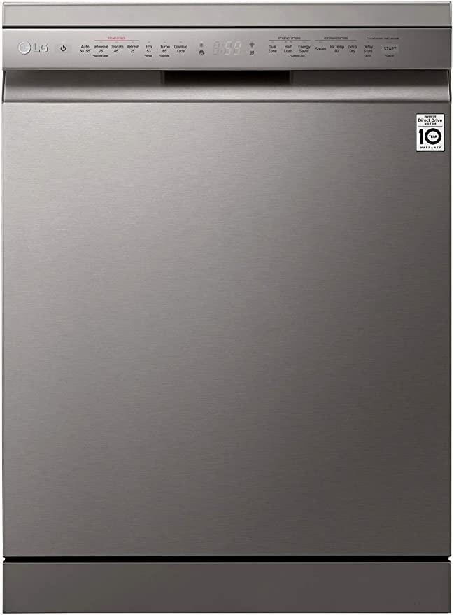 LG 14 Place Settings Wi - Fi Dishwasher (DFB424FP, Silver, Silent Operation, Tough Stain Removal, Adjustable racks )